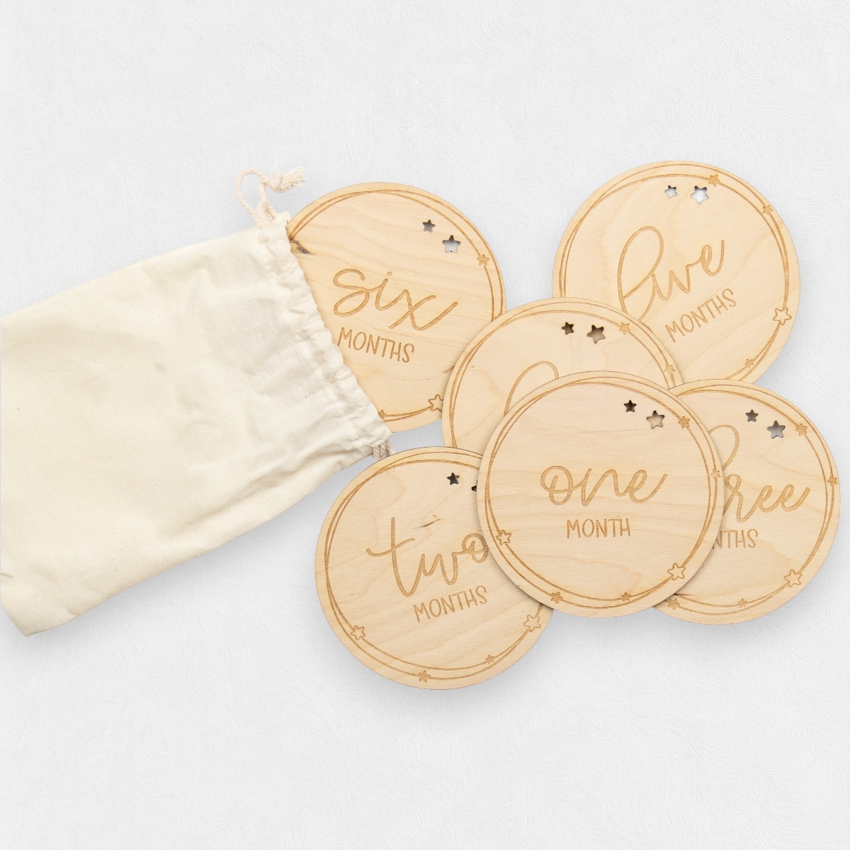 Help new parents document baby’s growth every month with these wooden milestone discs! Crafted from durable birch and measuring 4″ in diameter, these discs are the perfect photo prop for snapping those monthly milestone photos.